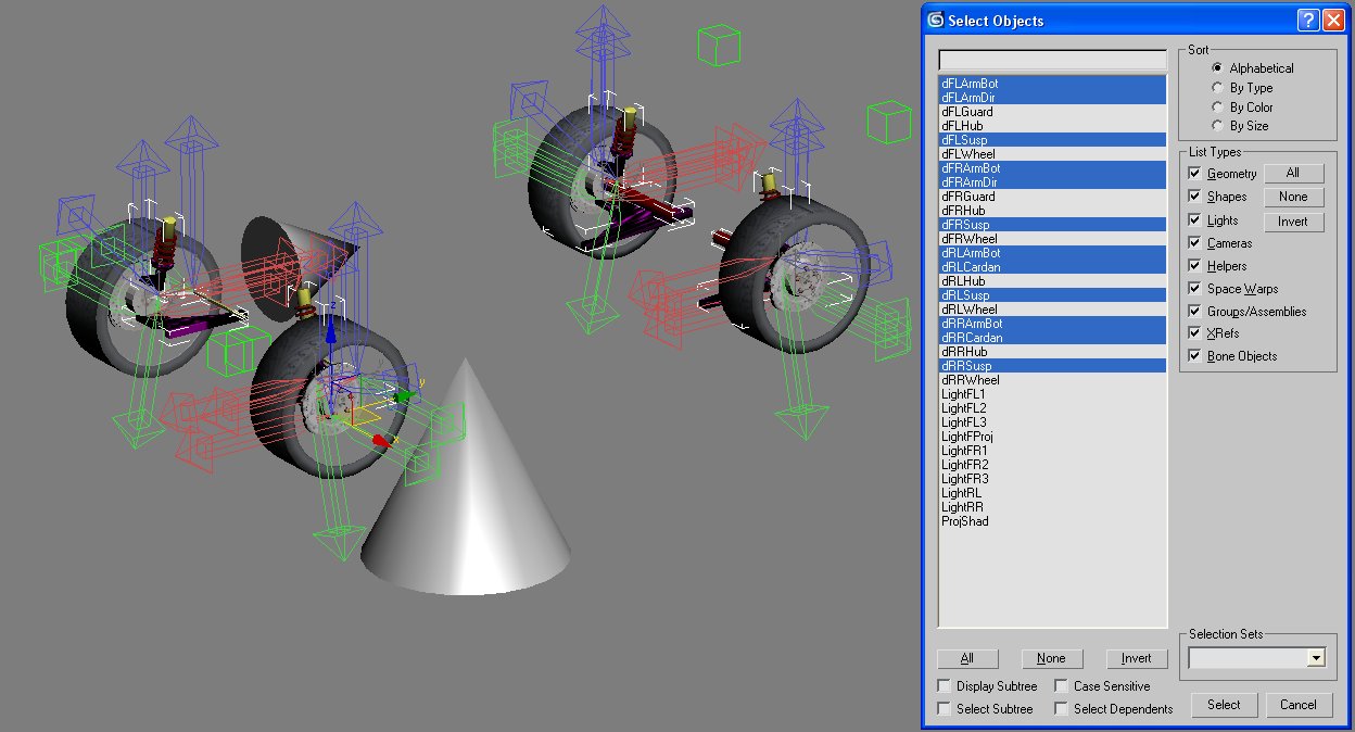 The pivots for the suspension objects that pivot from the body should be oriented as follows...
