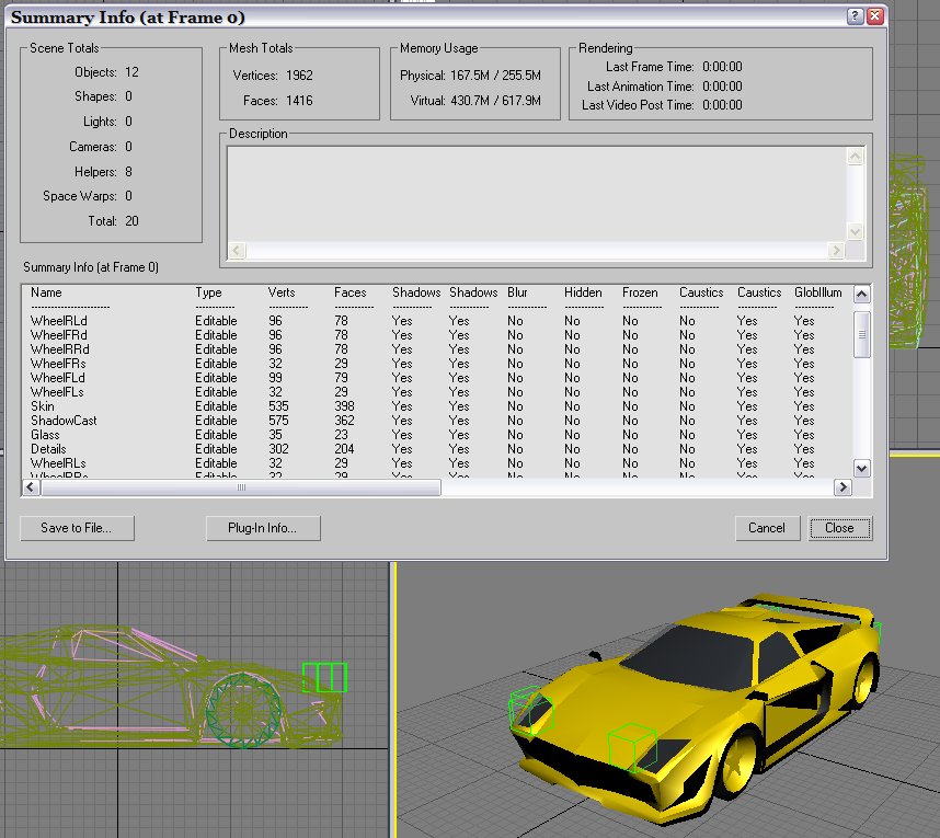 To see how many vertices the whole scene contains, use the Summary Info choice from the file pull-down menu. Its the Mesh Totals that you see here: